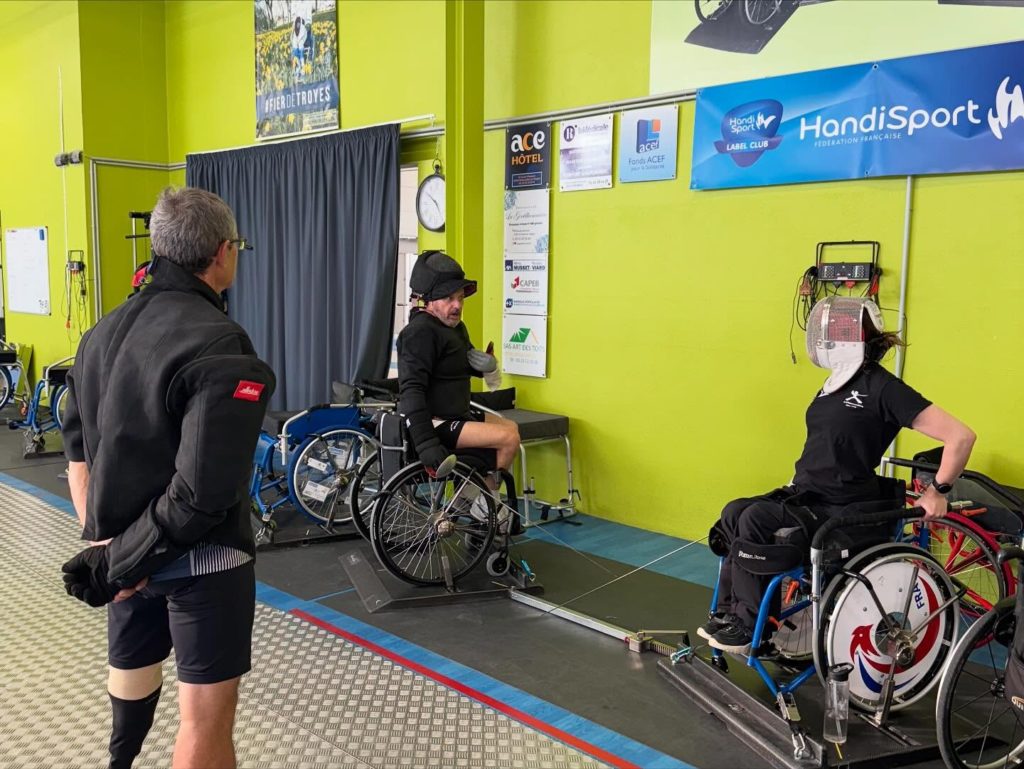 Nous avons eu l’honneur d’accueillir Maître Fabio Giovannini, entraîneur national de sabre FFH, qui a donné une leçon exceptionnelle à Margot Fourmond et échangé avec elle pour affiner sa technique.