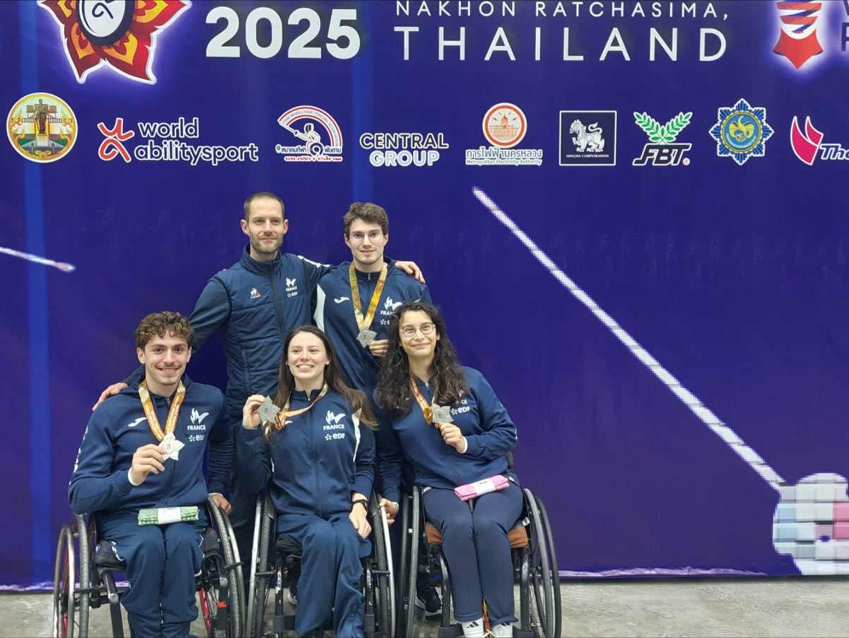 Stage de rentrée 2025/26 Fête du sports 2025/26 Margot et Alain à Iksan en Corée du Sud Margot au Championnat du Monde à Iksan en Corée du Sud Reprise des entraînements 15eme Open Handisport Maître Giovannini entraineur national avec Margot Journée National de l'Arbitrage Compétition nationale Sarrebourg 11 & 12 octobre 2025 Podium épée Sarrebourg Margot et Julie 3ème cat. A, Margot 1ère cat. B Podium sabre Sarrebourg Margot 1ère cat. B et 3eme cat. A Compétition régionale Thionville 11 & 12 octobre 2025 Podium M20 Thionville Jade 1ère Podium Seniors Thionville Cassiopée 3ème Stage formation des Maîtres 13 au 17 octobre 2025 Fête ton anniversaire, encadré par Julien HAMELIN Compétition nationale Rodez 18 au 20 octobre 2025 Stage DEJEPS, Anniversaire du Maître Antoine MANCEAUX Initiation pour nos partenaires BPALC et ACEF Fête ton anniversaire encadré par Maître Antoine MANCEAUX Circuit National Vétéran 1 & 2 novembre à Serris Stage régional à Chalons en Champagne Compétition Nationale M17 Le Havre Circuit Handisport à Troyes 8 & 9 Novembre 2025 Margot FOURMOND 3eme et 1ère cat. B au Sabre Julie JOFFRES 3eme et Margot 1ère cat. B à l'épée Circuit National Seniors Dames à Mâcon Compétition Régionale M11 / M13 / Vétéran à Rethel Léo CAFFELAIRE 1er à Rethel Lucie CONDETTE 3eme à Rethel Emerick DUMOULIN 3eme à Rethel Circuit National Seniors Hommes à Pont à Mousson Coupe du monde en Thaïlande Margot FOURMOND, Brigitte WATREMETEZ, Alain FEBVRE et Maître Dominique DECLAUDE Coupe du monde en Thailande, Equipe de France Fleuret, Margot FOURMOND 2eme Challenge mondial M17 à Grenoble, Jade BOURGEOIS et Antoine HENRION